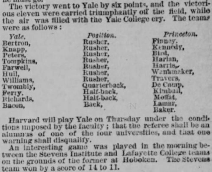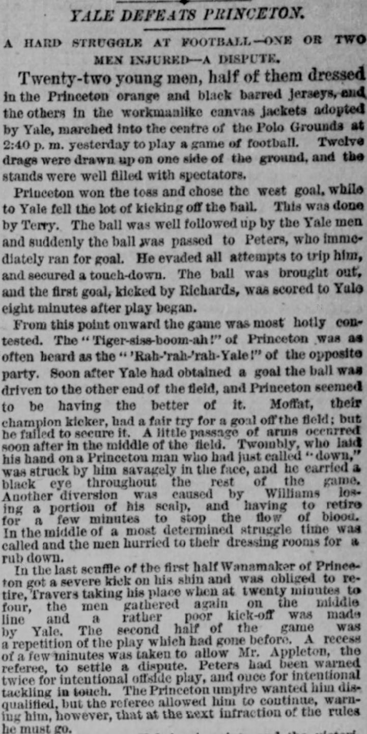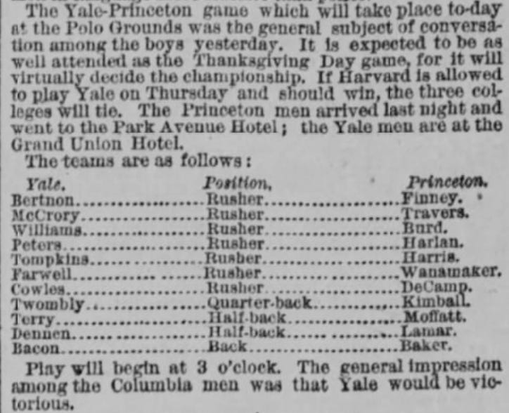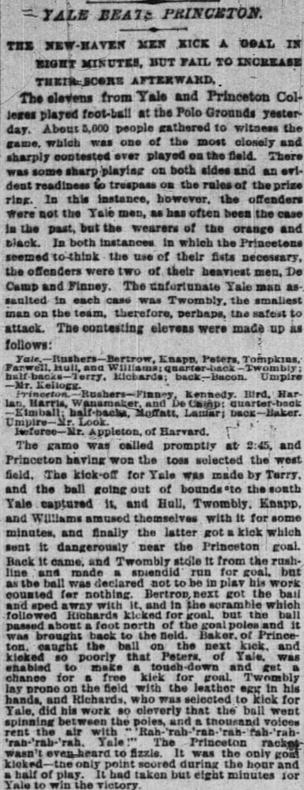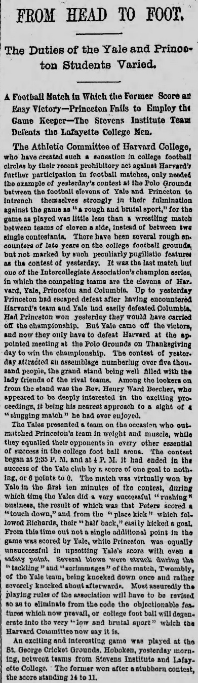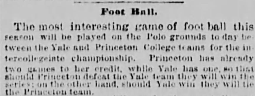 Though its overall sports coverage was spotty, The New York Times generally had better football coverage in the early 1880s than any of the other New York papers.