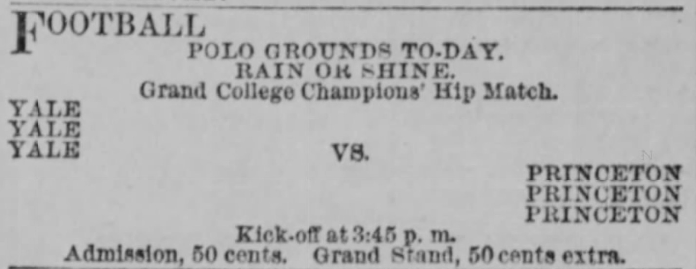 In 1883, both teams entered the November 24th game at the Polo Grounds in New York City undefeated. And, interestingly enough, there was actually quite a bit of build up for this game: