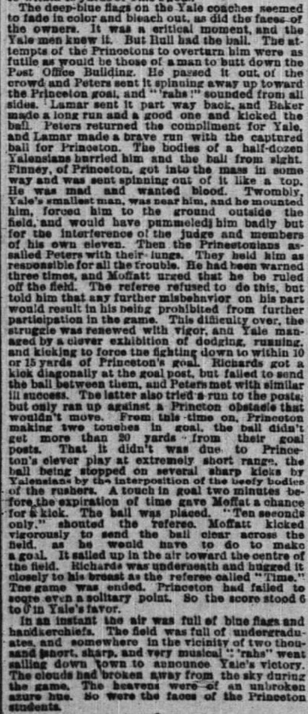 Though we generally think of Yale vs Harvard as the great old football rivalry, the truth is that Yale and Princeton had a much more meaningful and active rivalry back in the 1880s.